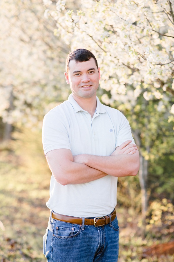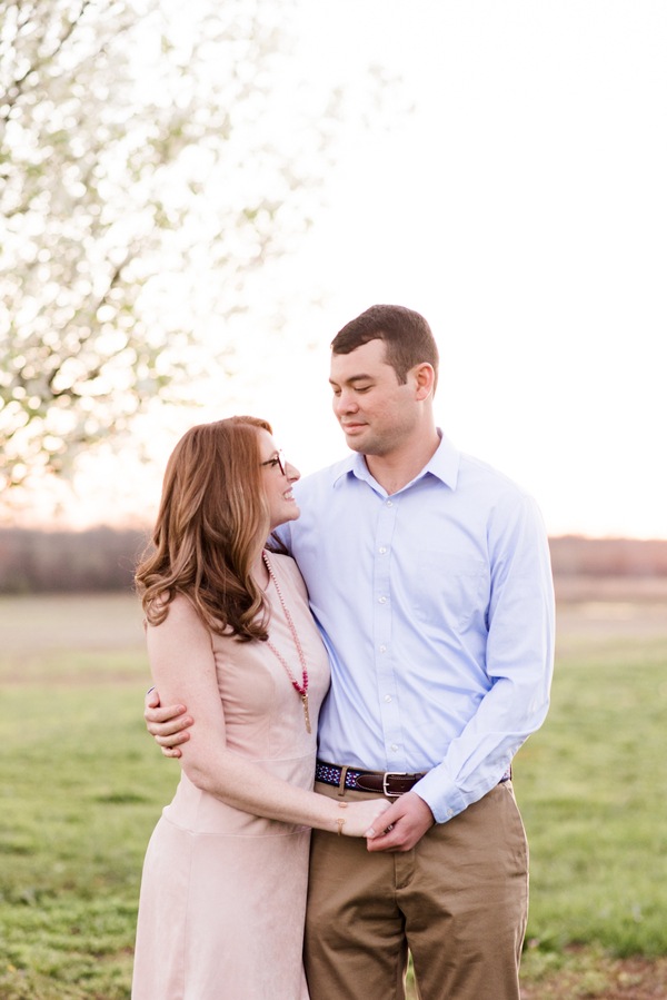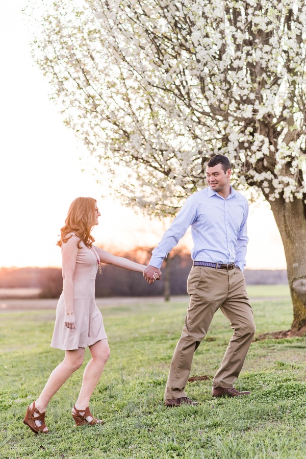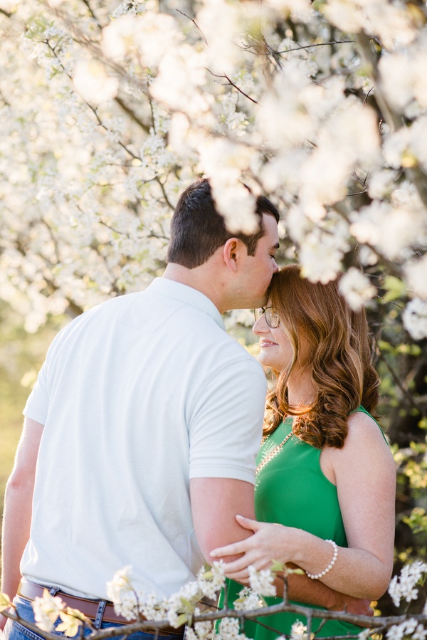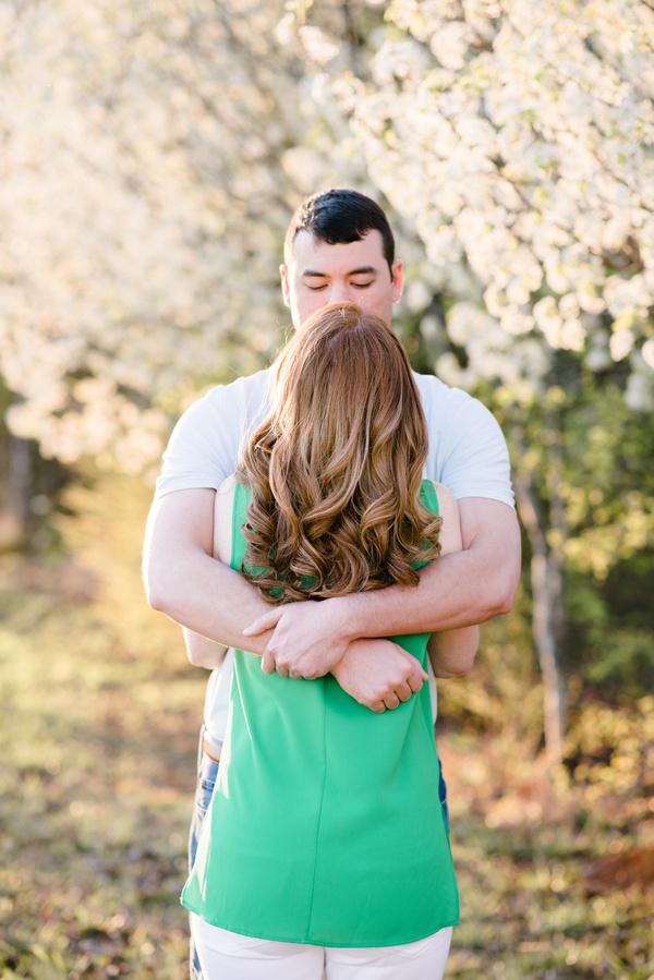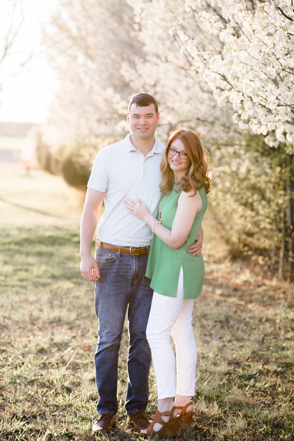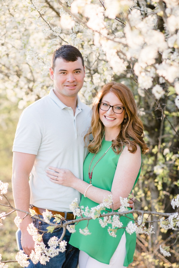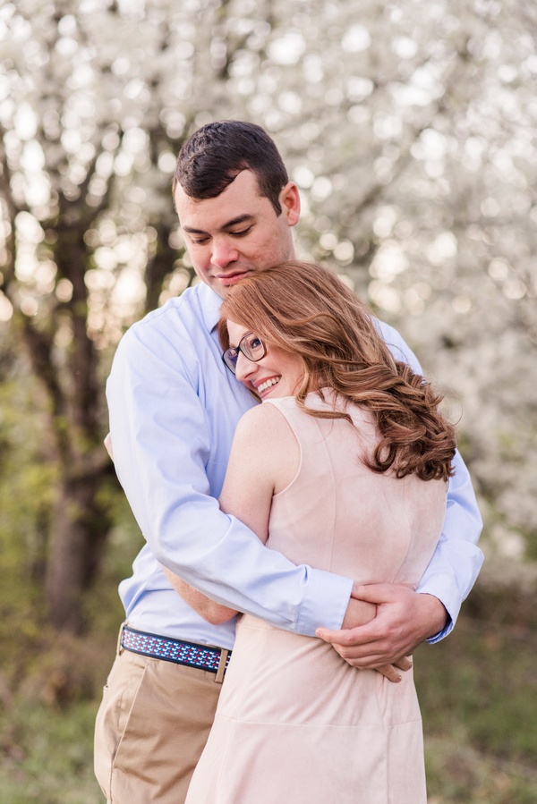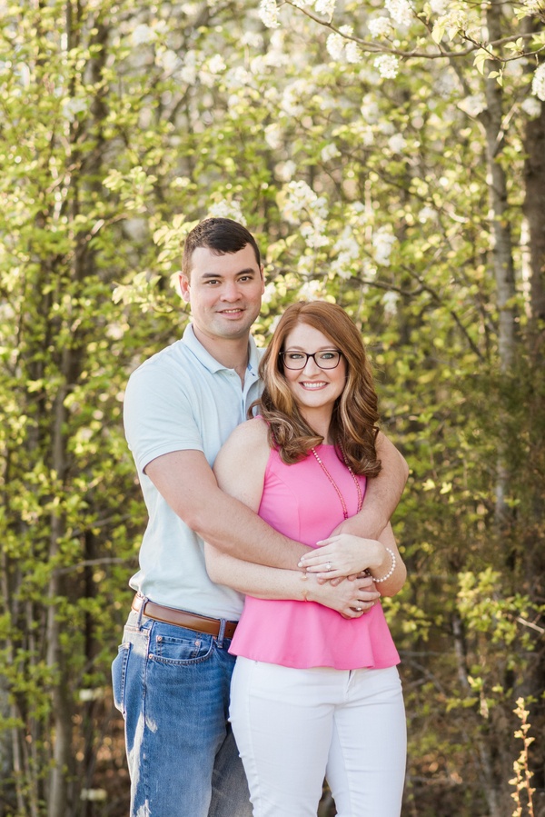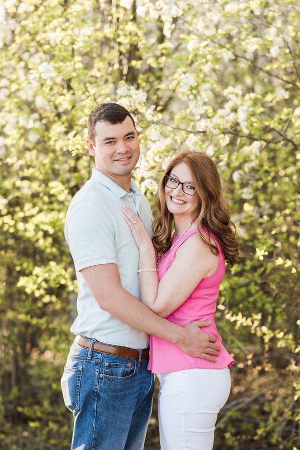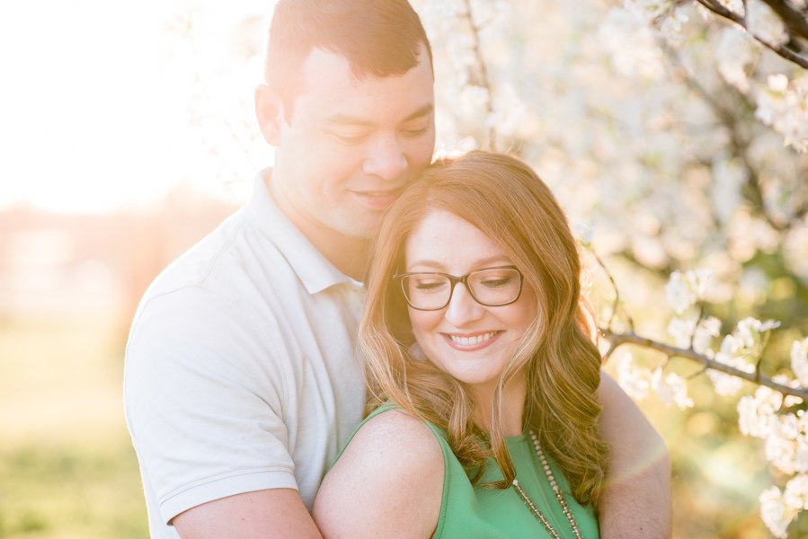 I met Aimee and Adam for the first time at their engagement session.  We had planned to meet during golden hour in my brother-in-law’s back yard, because the Bradford Pear trees were blooming.  These two weren’t afraid to have fun & cuddle in front of the camera.