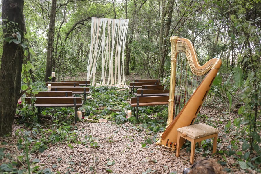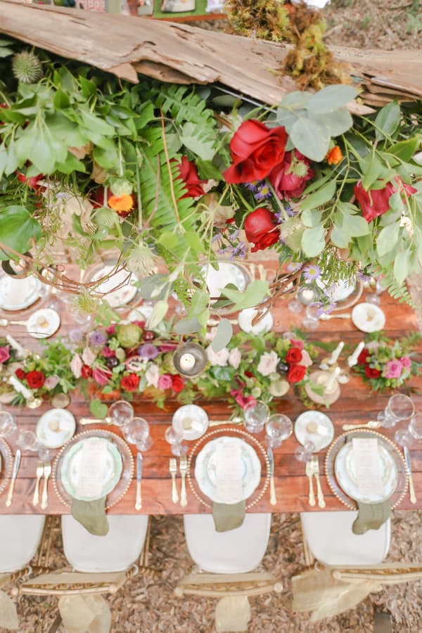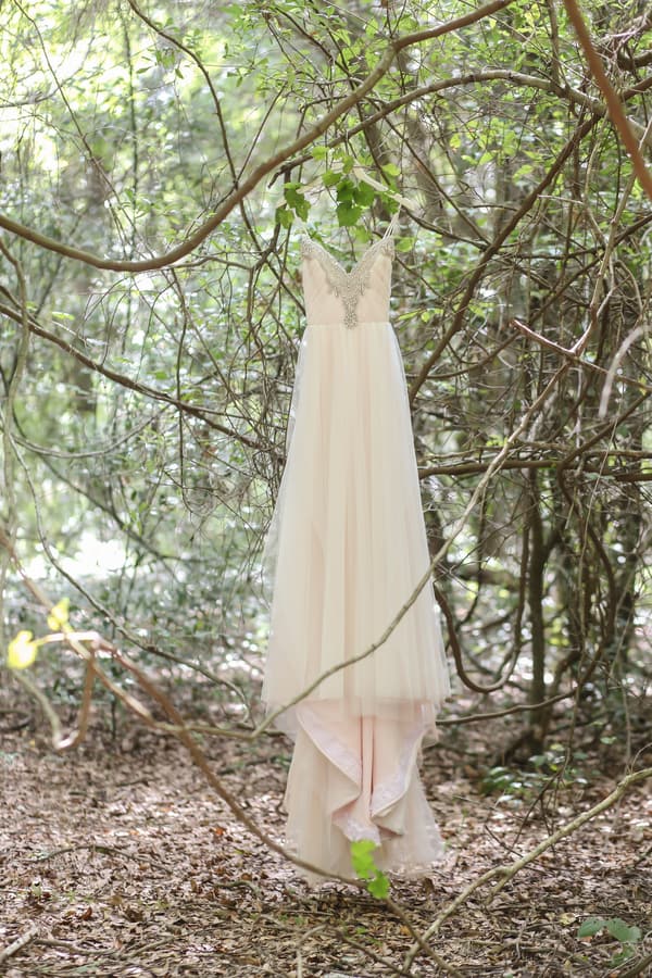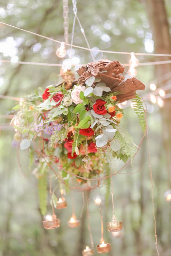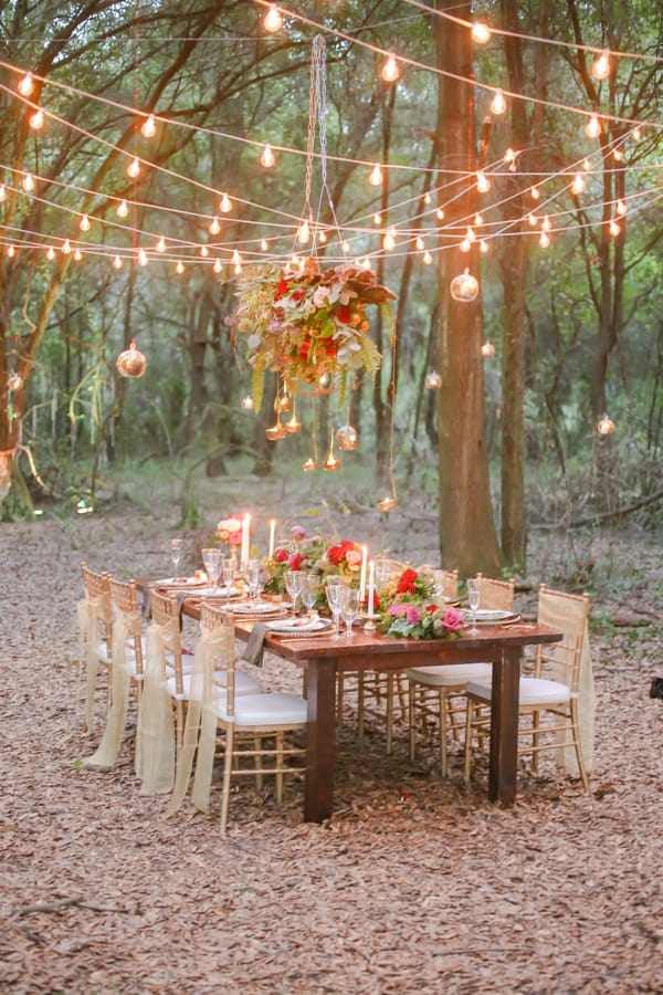 This wedding is set to look like an enchanted forest, brimming with whimsical details and romantic lighting! It was truly an inspirational wedding filled with gorgeous eye catching features! It’s not every day that we experience an outdoor ceremony and reception done so beautifully,–to the nines. This breath-taking wedding took place at Casa Lantana. We love the natural beauty of this property, in fact it was the main inspiration for our color palet!! The designers at Blue Skies Events, along with a little help from Tailored Twigs, complimented the magic and life of this beautiful forest perfectly! Our brides blush colored wedding gown created an elegant Bohemian look. The dress exemplified our brides soulful personal style! Our couple said their “I Do’s” in front of a custom made 20-foot-tall ivory and blush ribbon backdrop. This back drop was strung in the middle of the forest using the lush trees from the setting. The aisle for this ceremony had a cedar stepping path laced between the ivy foliage. As you can see by this lengthy post, we could not get enough of these deatils!! We, Life Long Studios, worked hard to capture every element of the day. We couldn’t have asked for better lighting as the sun dipped behind the treeline and the string lights and stunning chandeller brought the table to life. We hope you enjoy this stylized wedding as much as we do!!