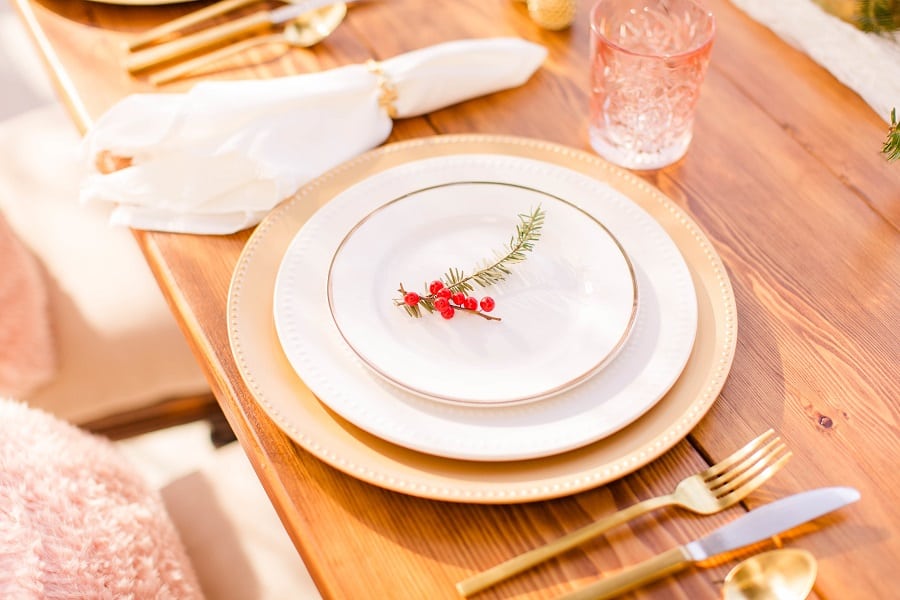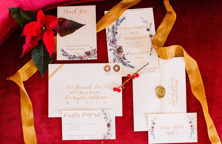 From Cake & Lace: We absolutely love this Christmas styled shoot! If you are planning a Christmas wedding or party, consider this MAJOR inspiration! We are in love with these photos and how they turned out. Wow! The colors, the details, the food. So beautiful!