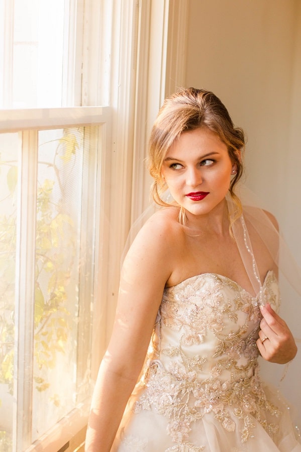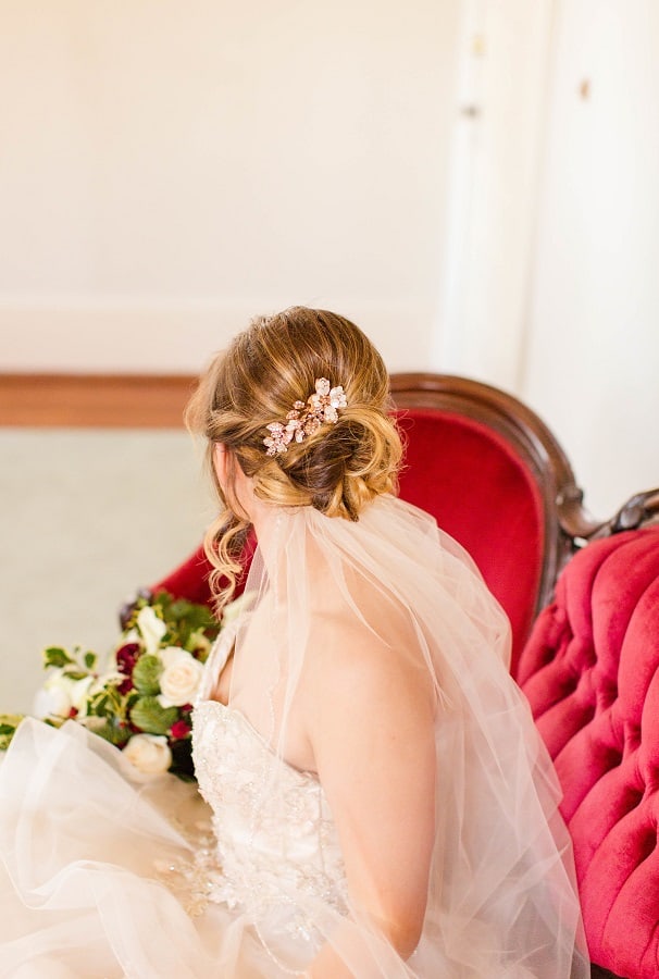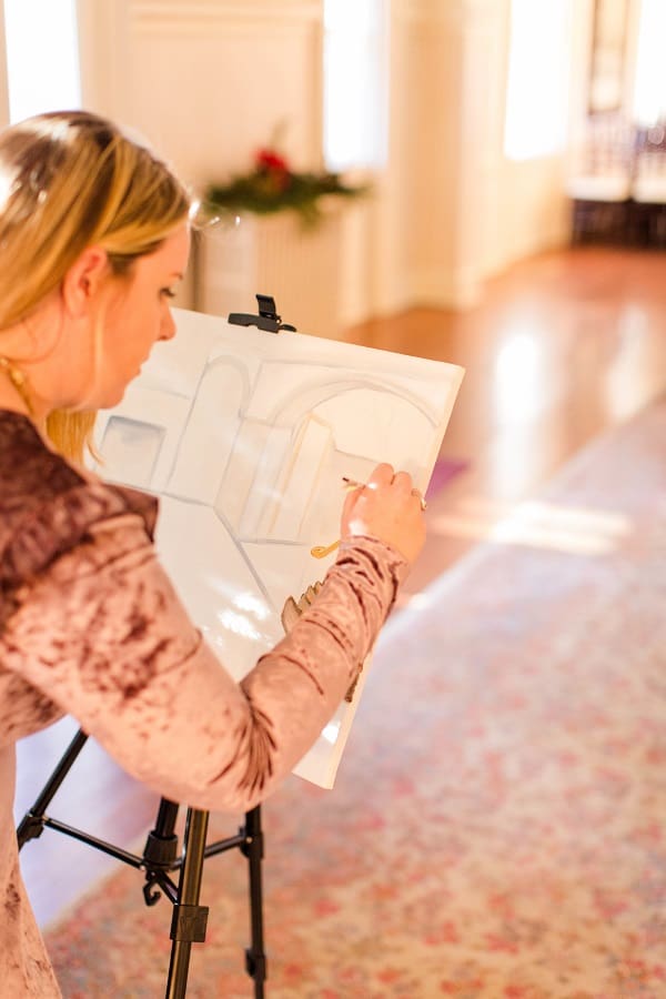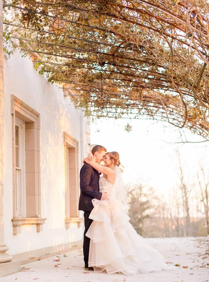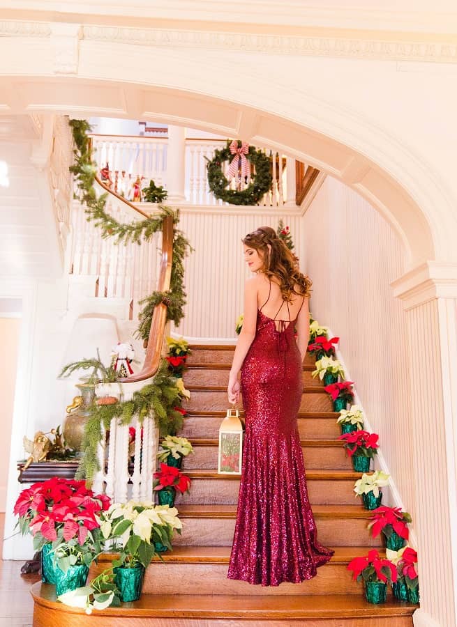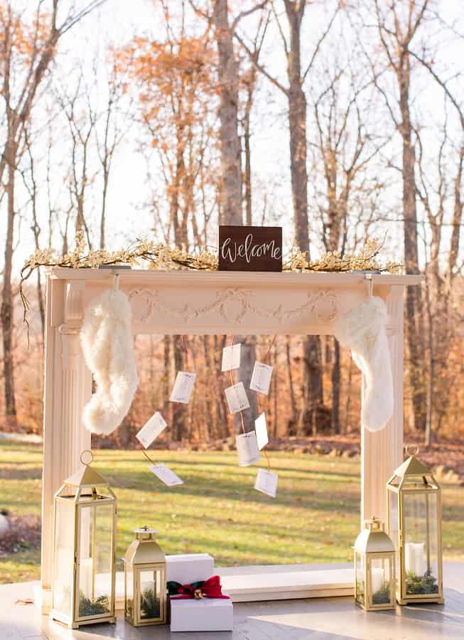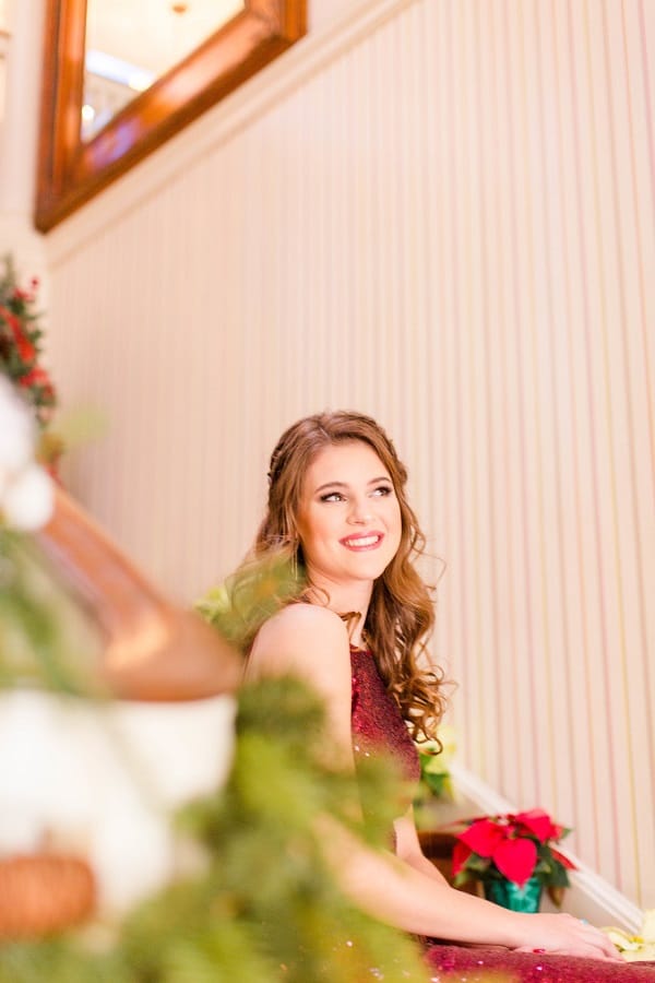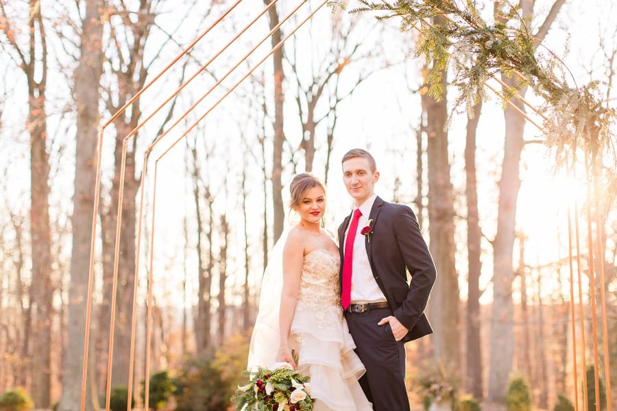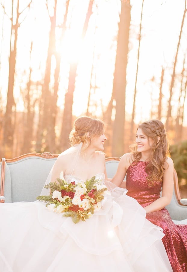 The shoot was at the beautiful Liriodendron Mansion in Bel Air, MD, the mansion is way off the beaten path and truly a hidden gem. The models Katelyn and Nate actually got married recently so they had no problem playing the part. And Katelyn’s gorgeous sister Alyssa was our bridesmaid. The whole shoot was like a winter wonderland, like you’d see in Narnia. Between the cocktail and dessert bar in the forest to the Christmas themed sweetheart table, everything was perfect. Heather Misner of Atwater Lane styling was the stylist behind the whole shoot.