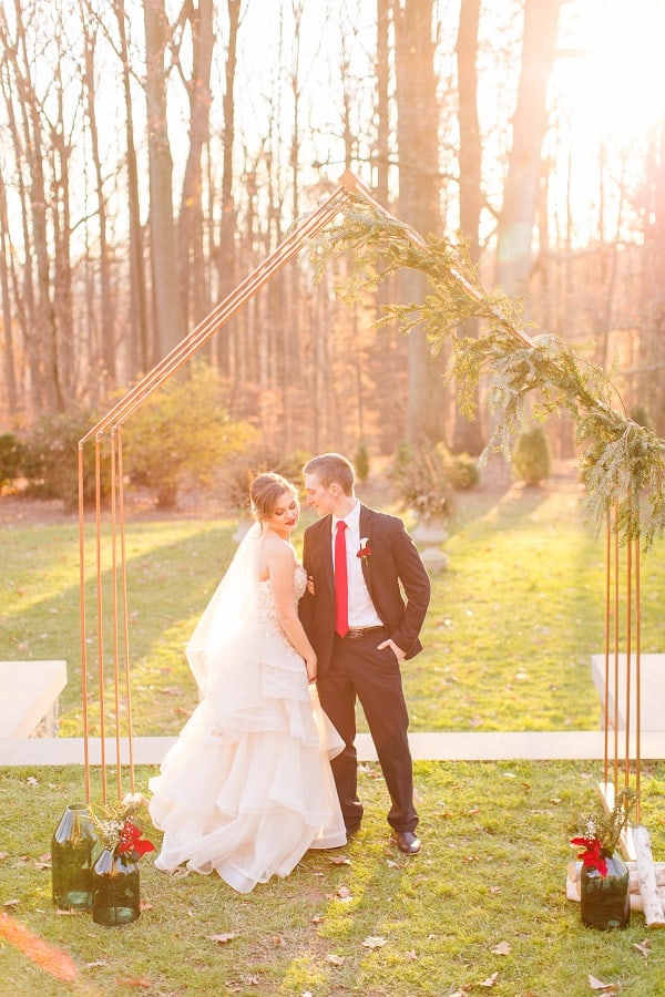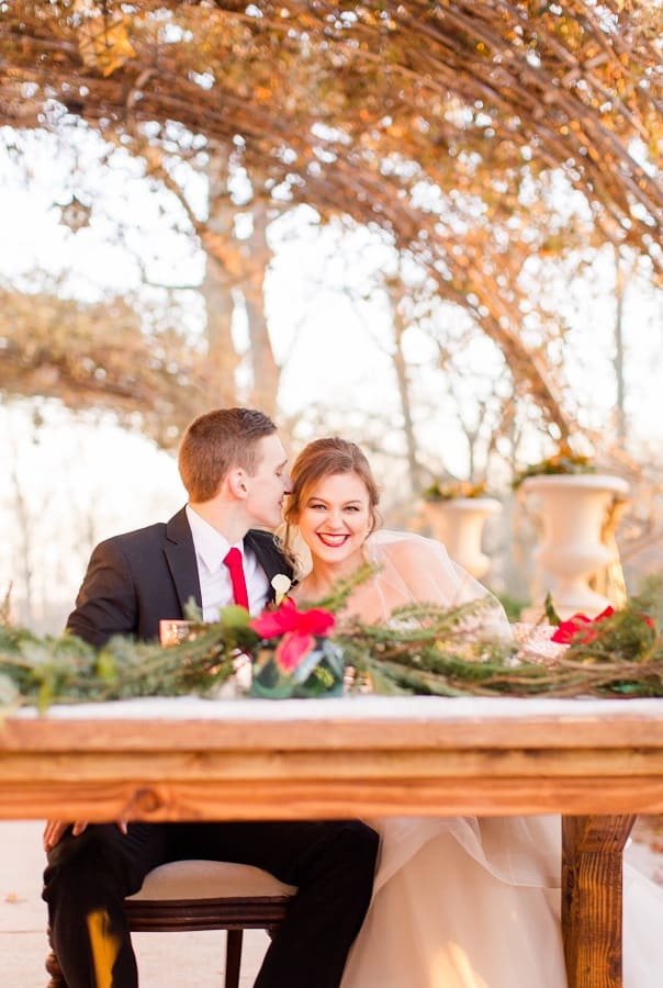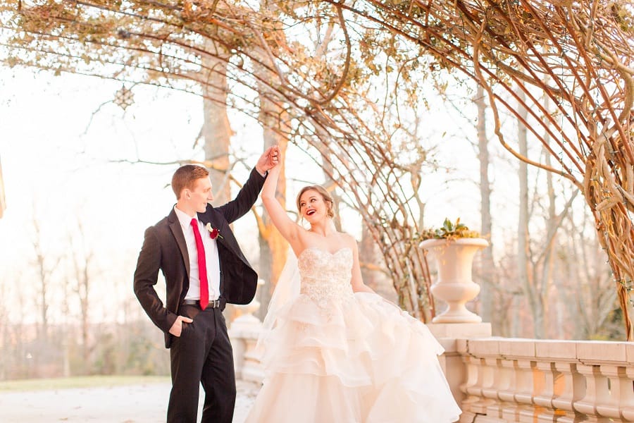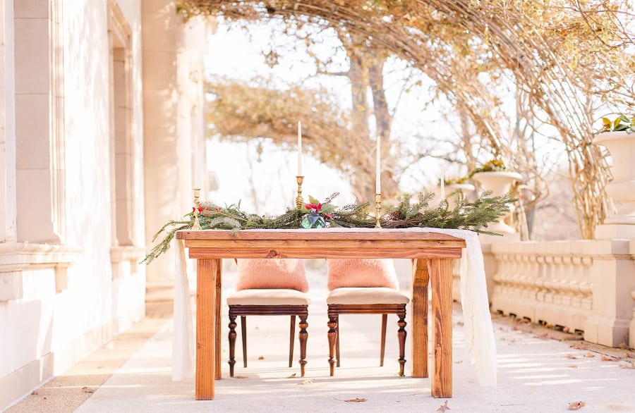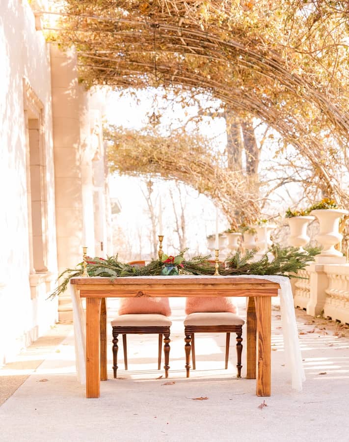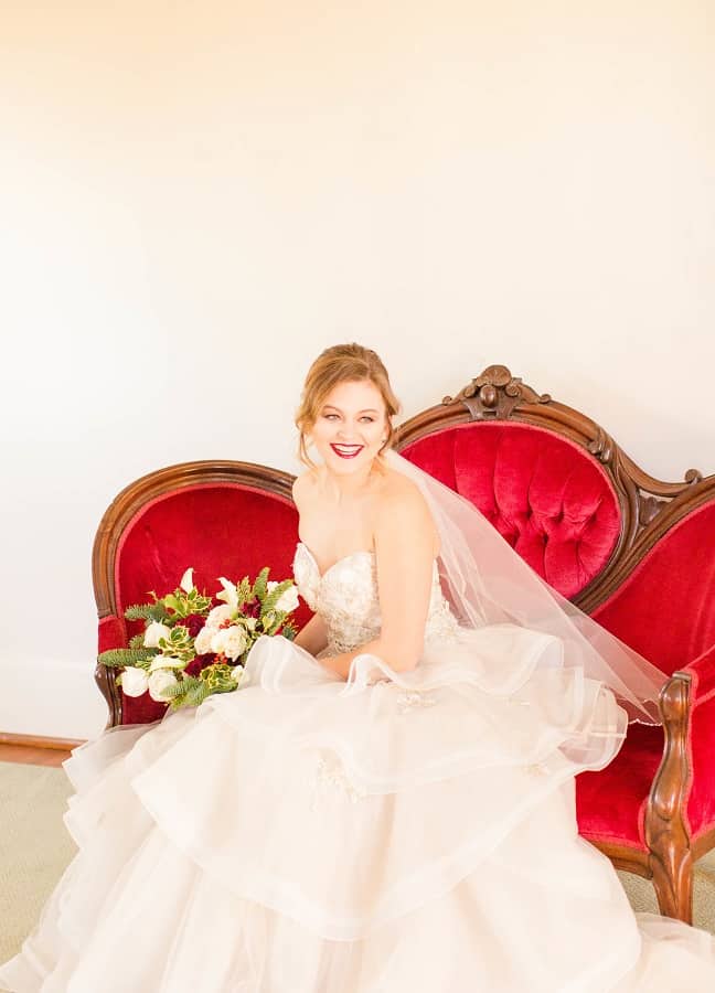 The shoot was at the beautiful Liriodendron Mansion in Bel Air, MD, the mansion is way off the beaten path and truly a hidden gem. The models Katelyn and Nate actually got married recently so they had no problem playing the part. And Katelyn’s gorgeous sister Alyssa was our bridesmaid. The whole shoot was like a winter wonderland, like you’d see in Narnia. Between the cocktail and dessert bar in the forest to the Christmas themed sweetheart table, everything was perfect. Heather Misner of Atwater Lane styling was the stylist behind the whole shoot.