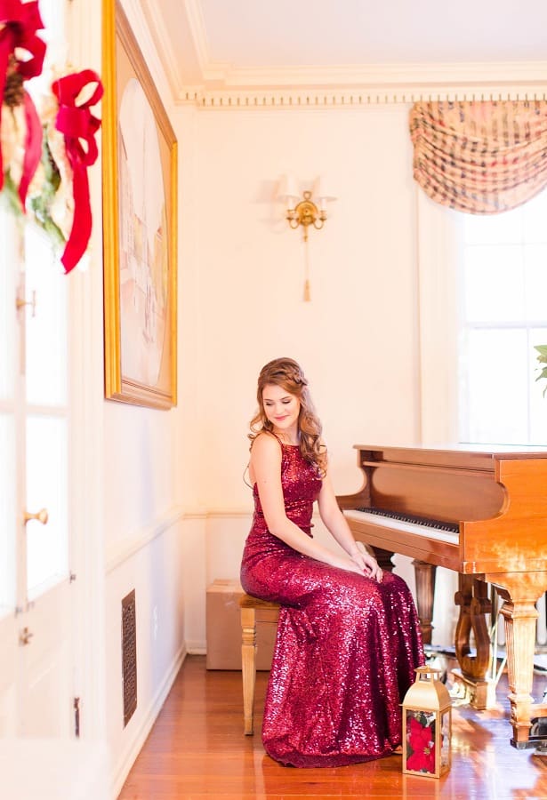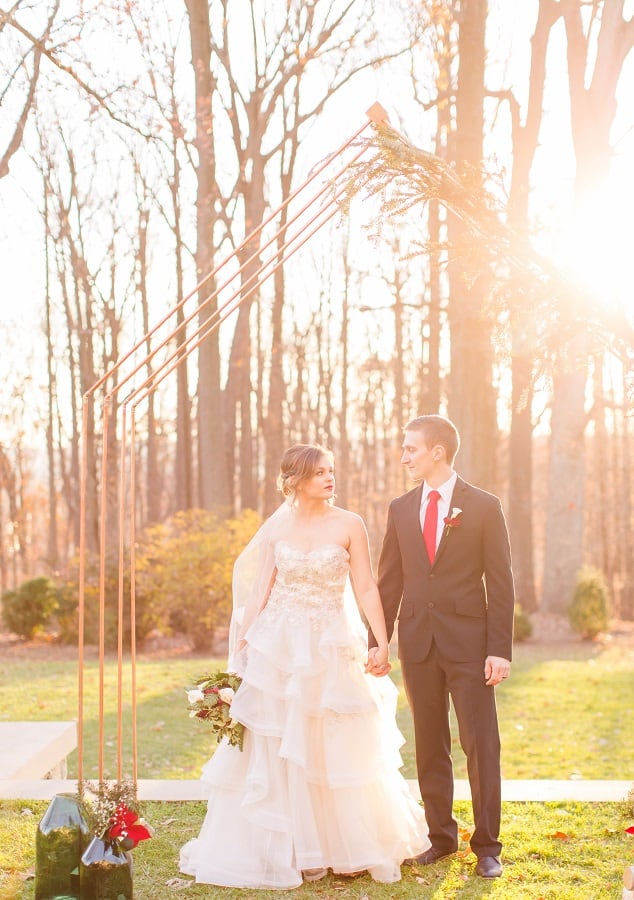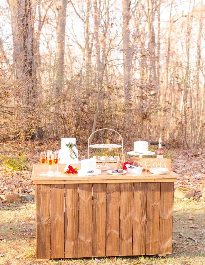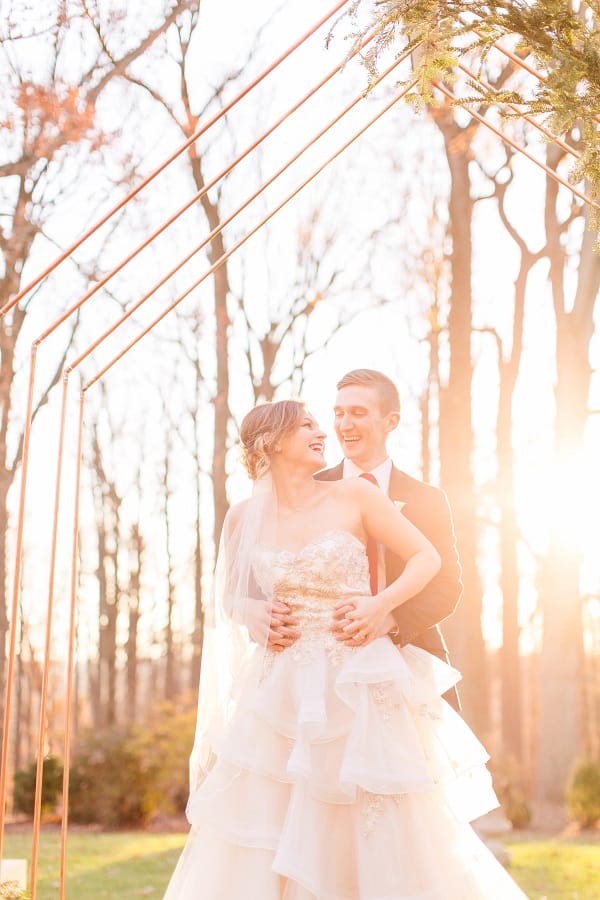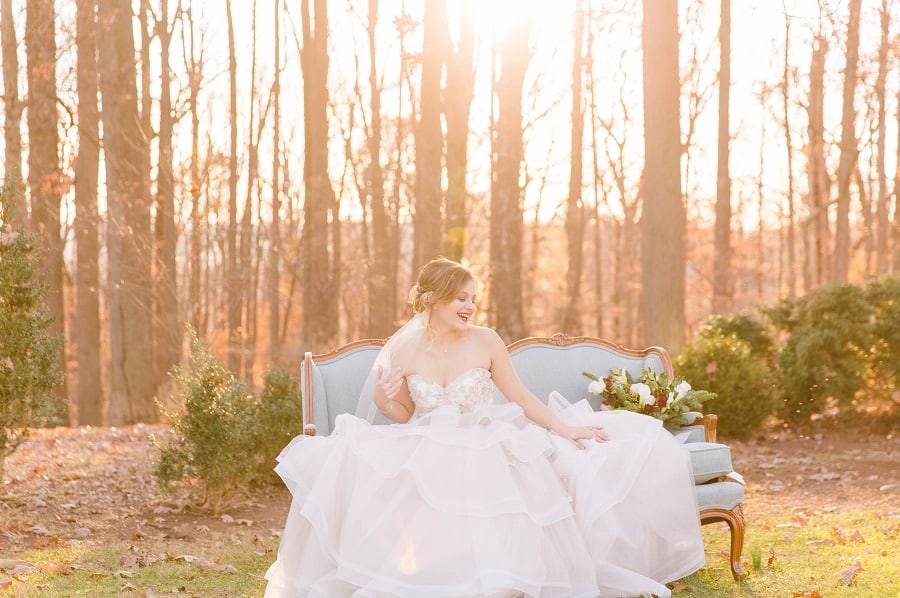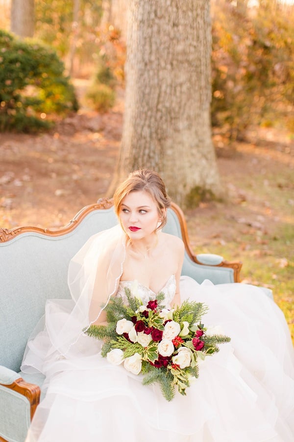 The shoot was at the beautiful Liriodendron Mansion in Bel Air, MD, the mansion is way off the beaten path and truly a hidden gem. The models Katelyn and Nate actually got married recently so they had no problem playing the part. And Katelyn’s gorgeous sister Alyssa was our bridesmaid. The whole shoot was like a winter wonderland, like you’d see in Narnia. Between the cocktail and dessert bar in the forest to the Christmas themed sweetheart table, everything was perfect. Heather Misner of Atwater Lane styling was the stylist behind the whole shoot.