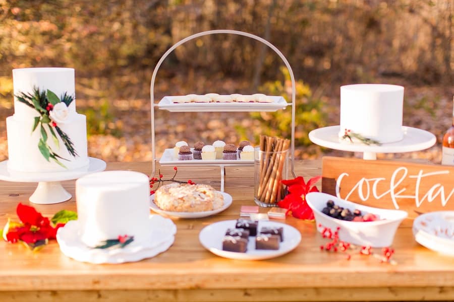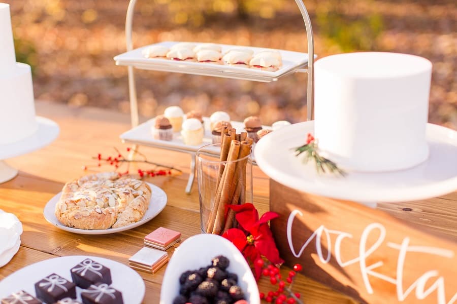 From Cake & Lace: We absolutely love this Christmas styled shoot! If you are planning a Christmas wedding or party, consider this MAJOR inspiration! We are in love with these photos and how they turned out. Wow! The colors, the details, the food. So beautiful!