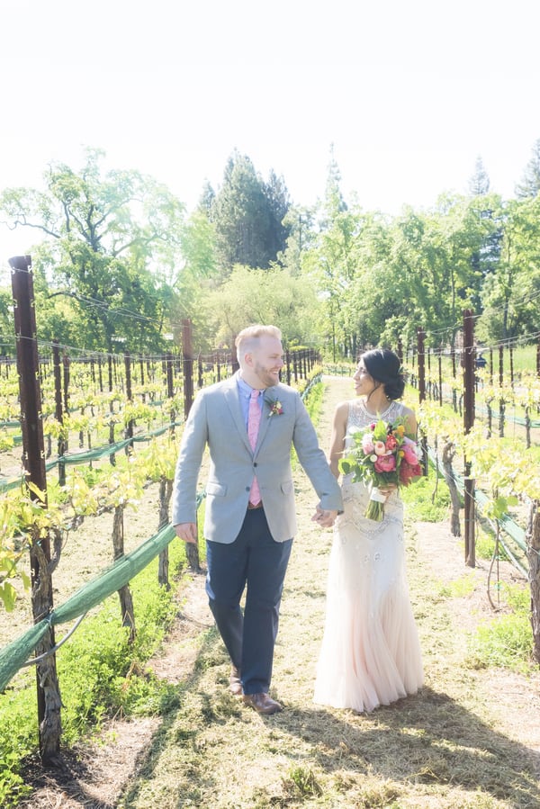 It was such a treat to photograph Jessica and Daniel’s Mad-Hatter tea party themed wedding in Napa Valley. Not only was the couple completely and madly in love, but their big day also had amazing and unique details that were simply gorgeous. The couple loves all things Disney, so their violinist played Disney songs during the ceremony including “I See the Light” from Tangled, “Beauty and the Beast,” and “Love is an Open Door” from Frozen. They also had some hidden Mickeys in their decorum, so we created some more through photography (in their ring shots and in shots of the desserts). The couple even planned their wedding to correspond with Dapper Day in Disneyland. Their Friday wedding allowed them enough time to drive down for the fun themed Disney day.