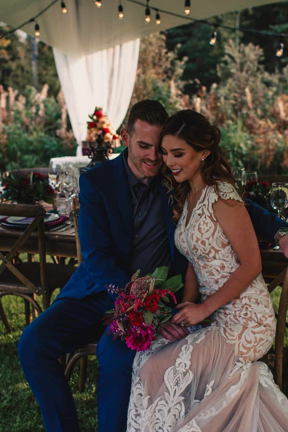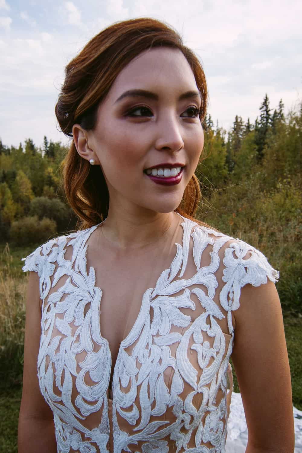 The bride wore the Lydia gown from Toronto based, Canadian designer Calla Blanche. Her casual outfit was a pink tulle skirt from ASOS and a tank top from H&M. Jill Keech Hair created for our bride a 5 strand pull-back braid and soft curls to frame her face. Lily Grey Artistry gave our bride a bold but delicate makeup look using deep mauve colours.