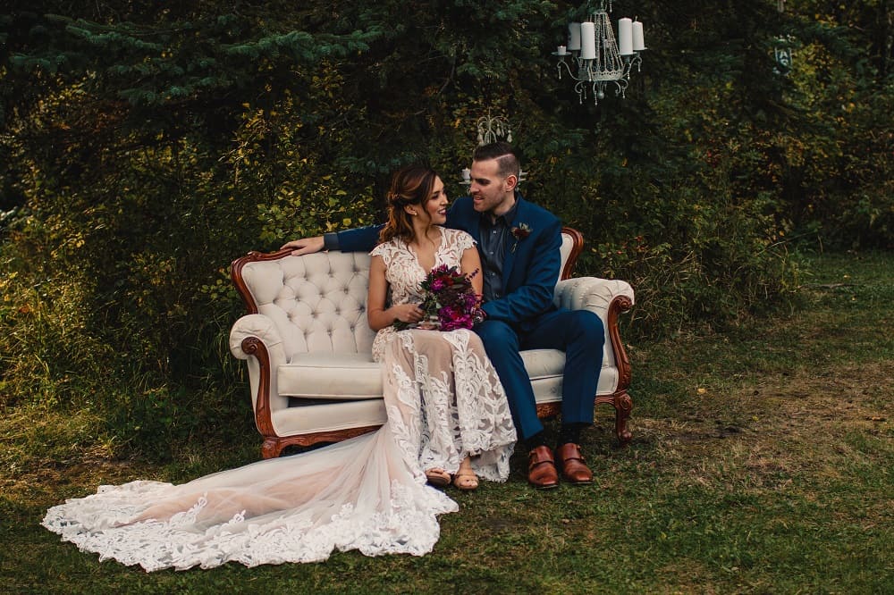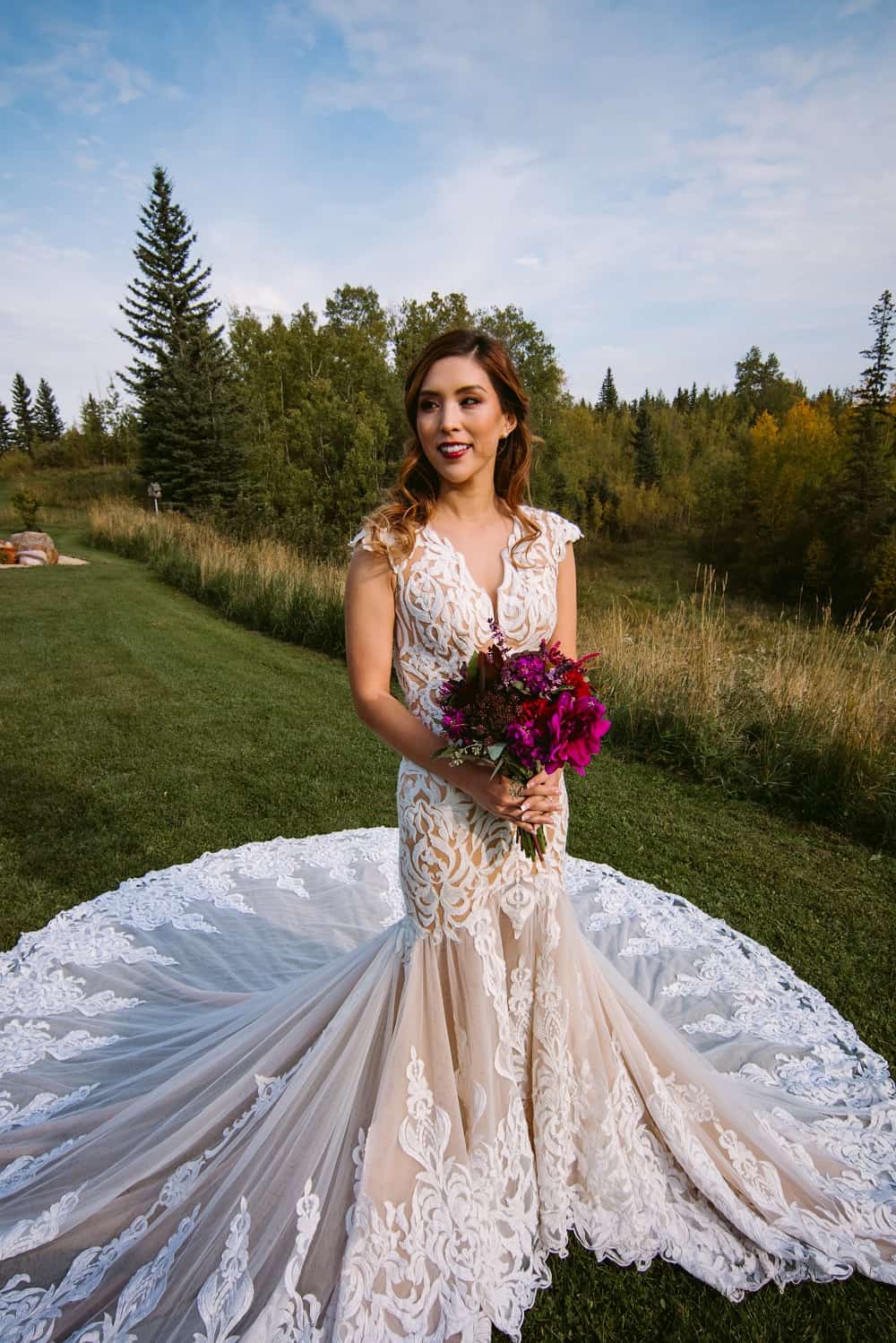 Inspired by a golden sunset and warm fall leaves, this romantic nature inspired wedding photo shoot features a brand new Alberta wedding venue, DIY ceremony backdrops, and breath taking scenery.