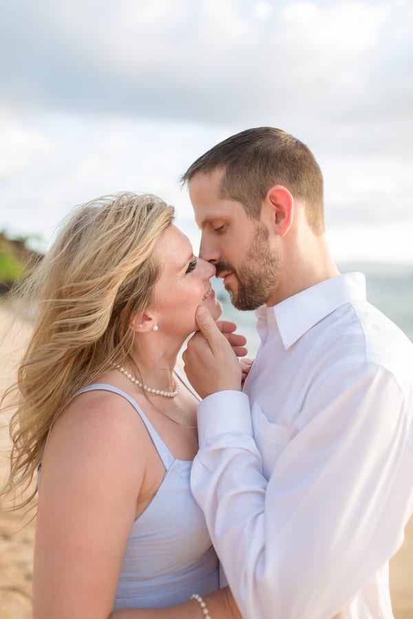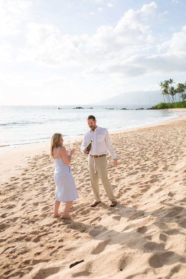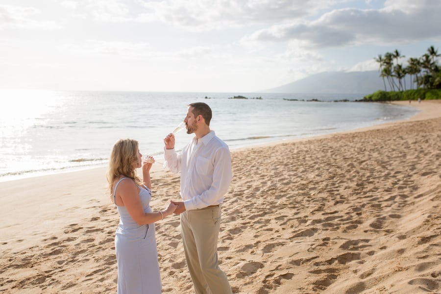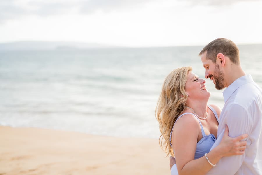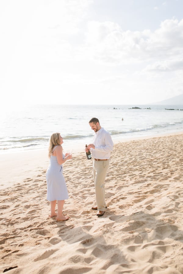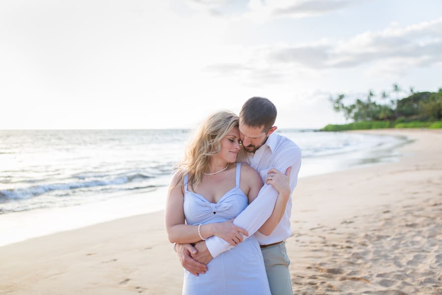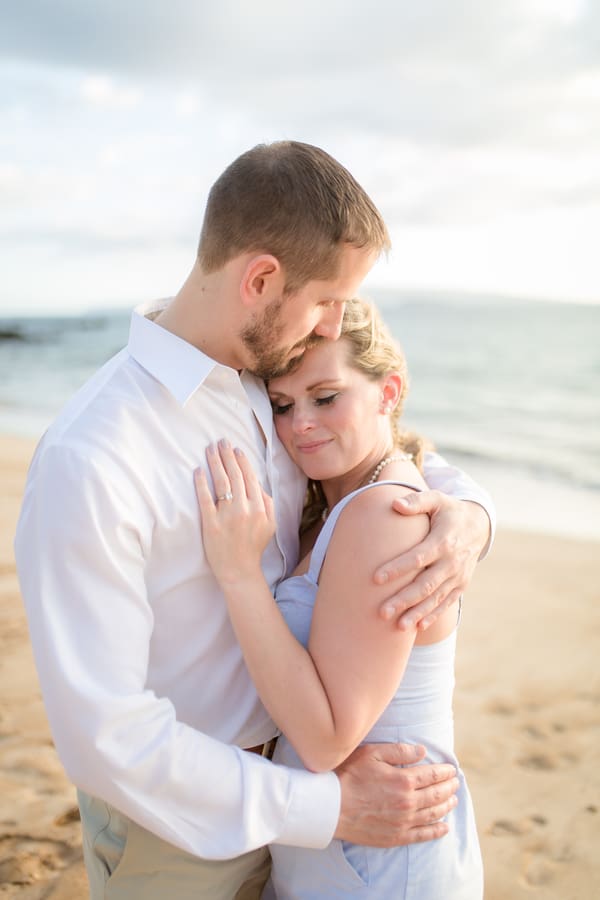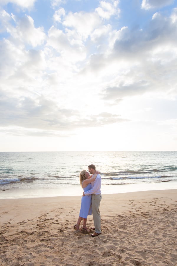 Kelli and Adam flew in for a work conference from Washington, and as they are planning a Maui wedding for late next year, decided that they would scope out some locations and get their engagement photos done while they are here. Blending a family is hard and that’s what these two hard working parents are doing! It was a nice getaway as between them they have 8 children! We arrived at Palauea Beach and I knew that Kelli was having a rough day with venue shopping! I told her not to worry and that her engagement session was going to be awesome! When they arrived, I had champagne glasses and champagne ready for them! Before you know it, the stress of that day was gone, and Kelli’s beautiful smile had returned! I seriously could have photographed them all day! Kelli and Adam didn’t need much guidance from me, as their love really took over! I felt like I was jut capturing them in their element! We had the most beautiful sunset Maui could have provided us, with black lava rocks to sit on! For the final photos, I had Adam come to me. I told him for this last shot, I wanted him to whisper in her ear why he chose her. Why he wants to spend the rest of his life with her.