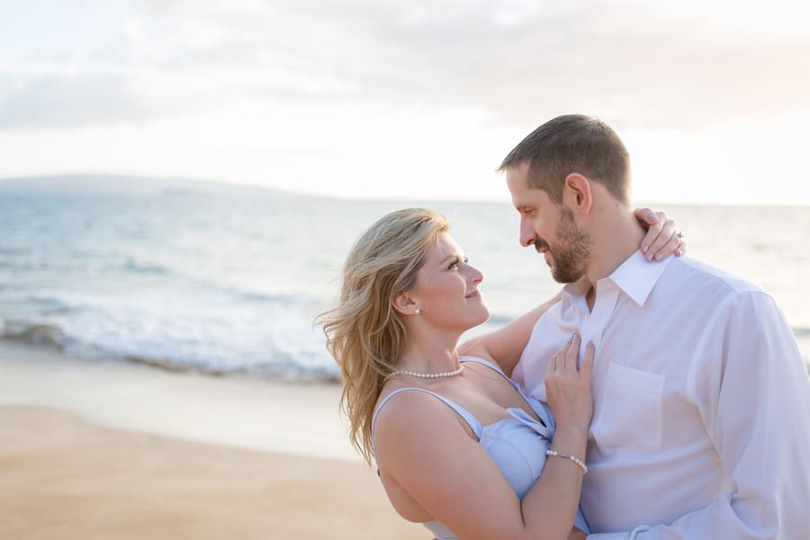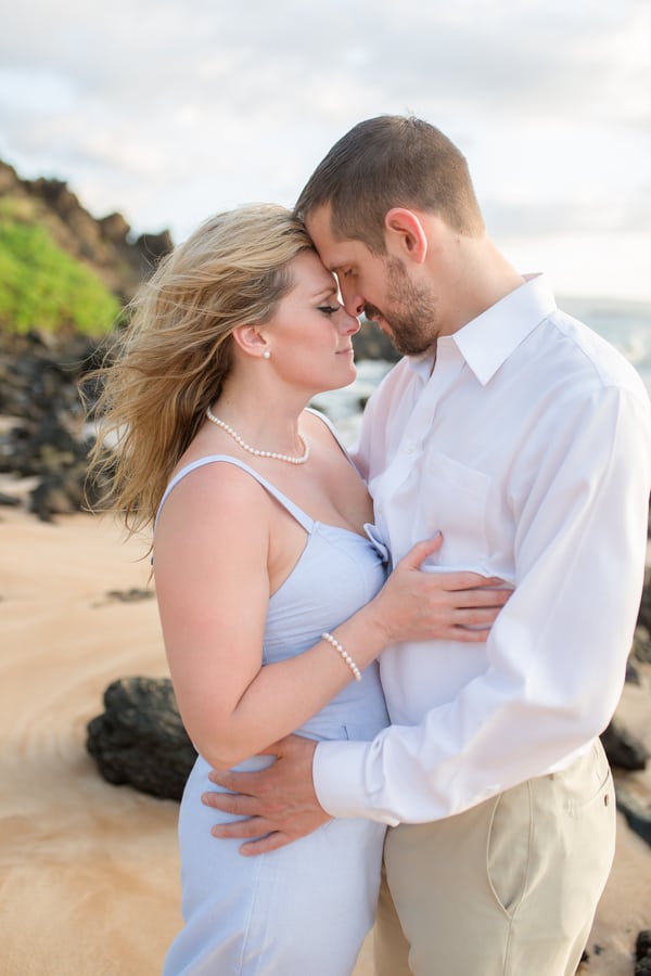 Kelli and Adam flew in for a work conference from Washington, and as they are planning a Maui wedding for late next year, decided that they would scope out some locations and get their engagement photos done while they are here. Blending a family is hard and that’s what these two hard working parents are doing! It was a nice getaway as between them they have 8 children! We arrived at Palauea Beach and I knew that Kelli was having a rough day with venue shopping! I told her not to worry and that her engagement session was going to be awesome! When they arrived, I had champagne glasses and champagne ready for them! Before you know it, the stress of that day was gone, and Kelli’s beautiful smile had returned! I seriously could have photographed them all day! Kelli and Adam didn’t need much guidance from me, as their love really took over! I felt like I was jut capturing them in their element! We had the most beautiful sunset Maui could have provided us, with black lava rocks to sit on! For the final photos, I had Adam come to me. I told him for this last shot, I wanted him to whisper in her ear why he chose her. Why he wants to spend the rest of his life with her.